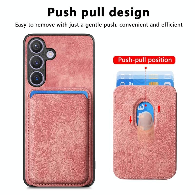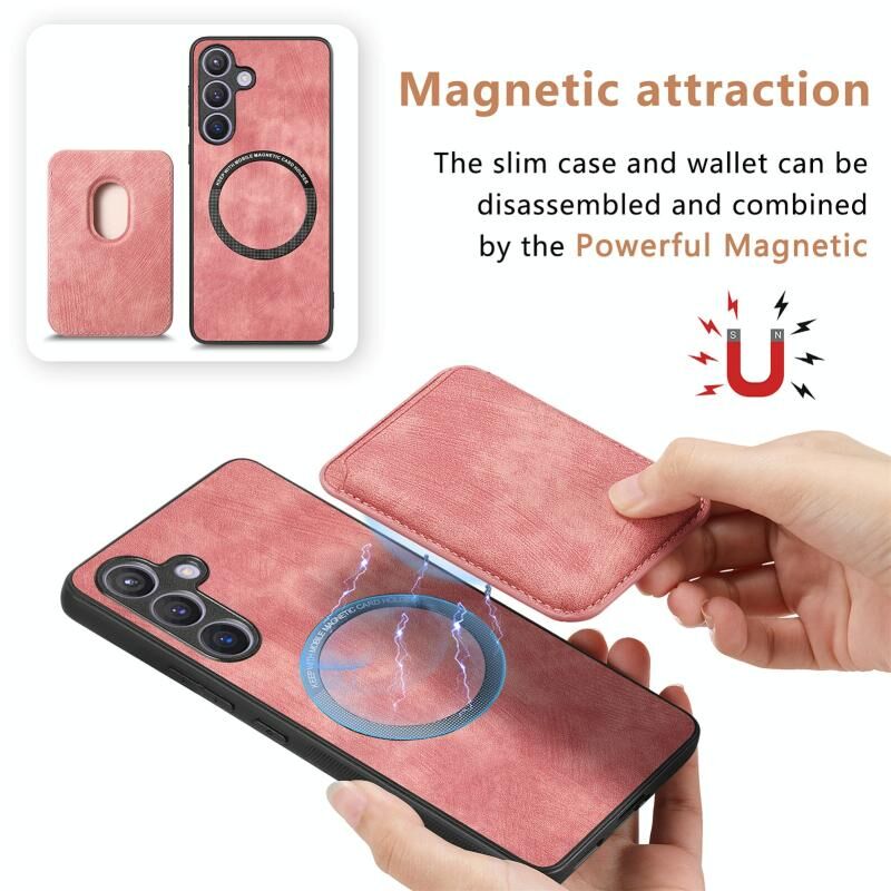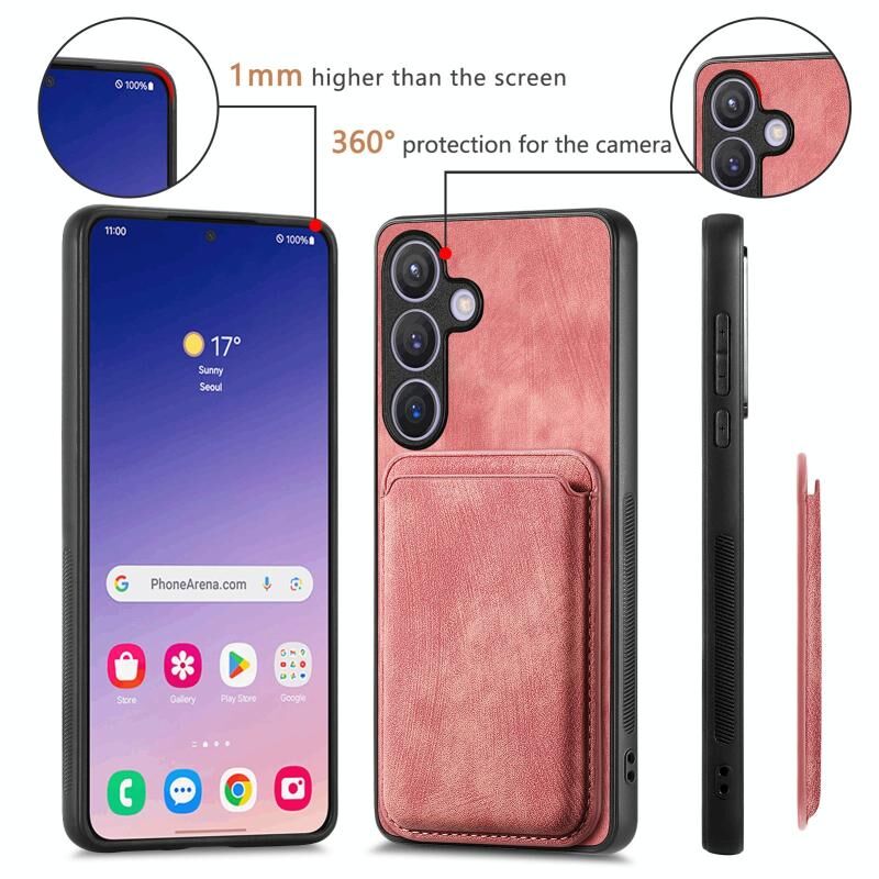 Για Samsung Galaxy S24 5G Ρετρό δερμάτινη τσάντα κάρτα μαγνητική θήκη τηλεφώνου (ροζ)