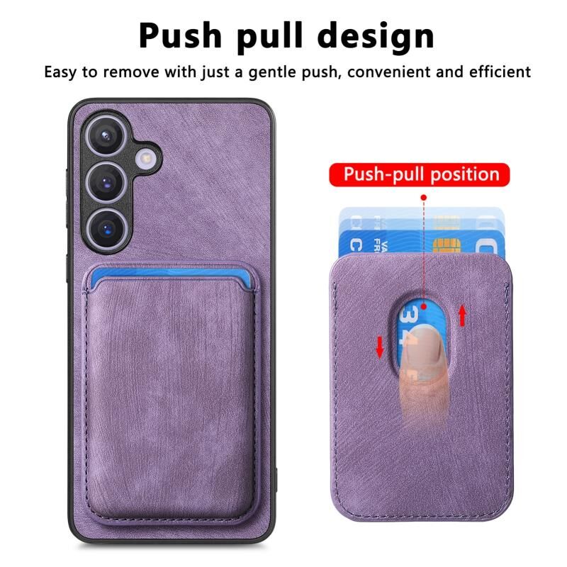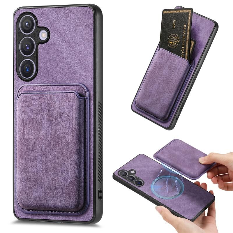 Για Samsung Galaxy S24+ 5G Ρετρό δερμάτινη τσάντα κάρτας μαγνητική θήκη τηλεφώνου (Μωβ)