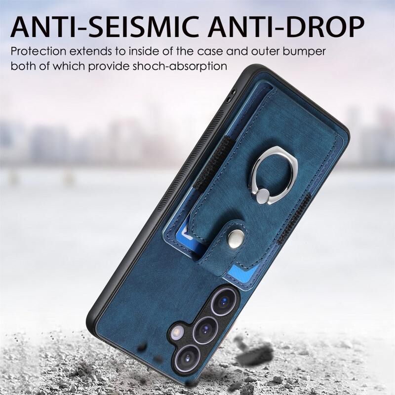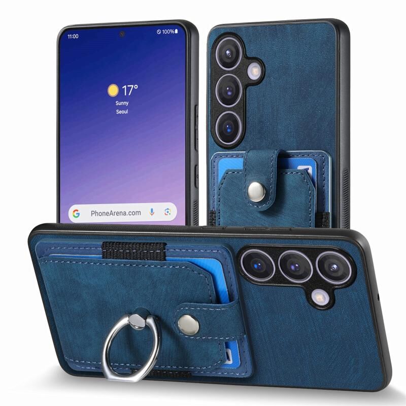 Για Samsung Galaxy S24+ 5G Retro δέρμα-άισθησης δέρμα-άισθησης δαχτυλίδι κάρτα πορτοφόλι υπόθεση τηλεφώνου (μπλε)
