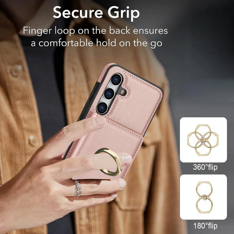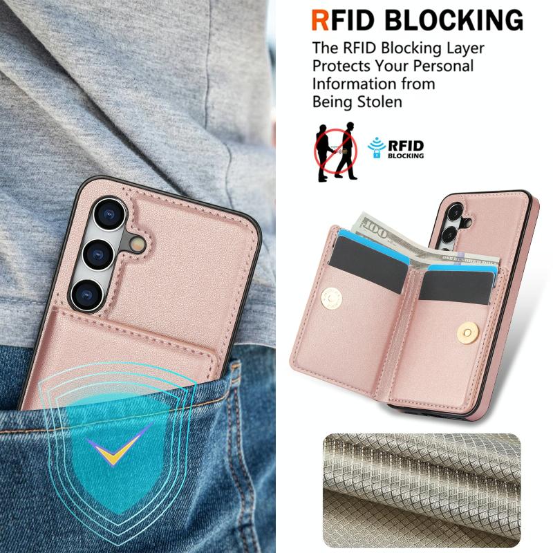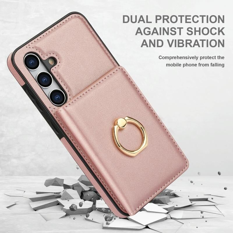 For Samsung Galaxy S24+ 5G RFID Anti-theft Card Ring Holder Phone Case(Rose Gold)