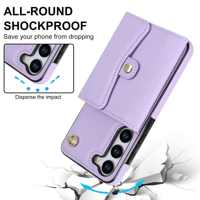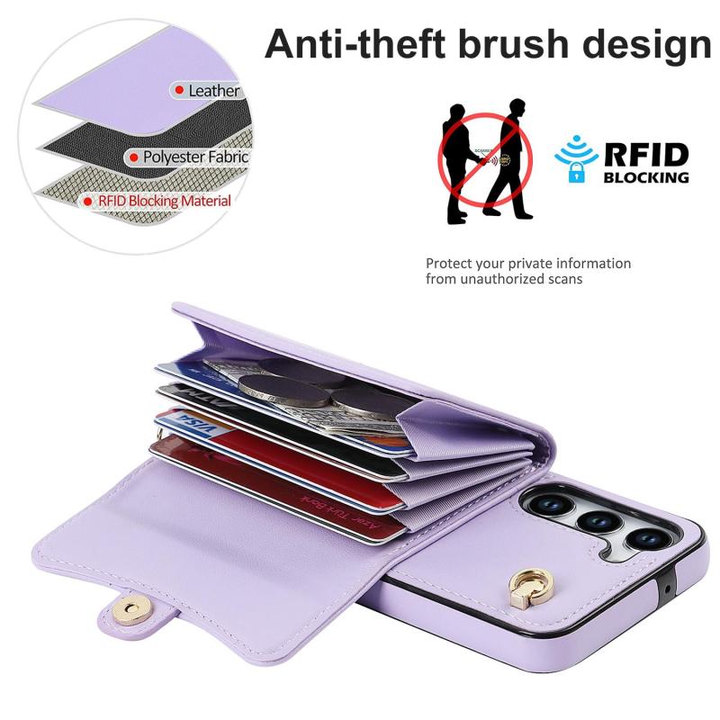 For Samsung Galaxy S24+ 5G RFID Card Slot Phone Case with Long Lanyard(Purple)