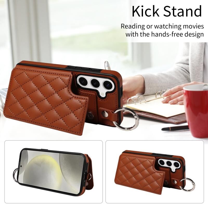 Για Samsung Galaxy S24 5G Rhombic υφή κάρτα τσάντα υπόθεση τηλεφώνου με σύντομο κορδόνι (καφέ)