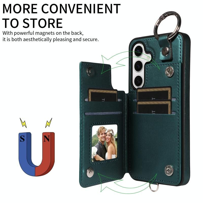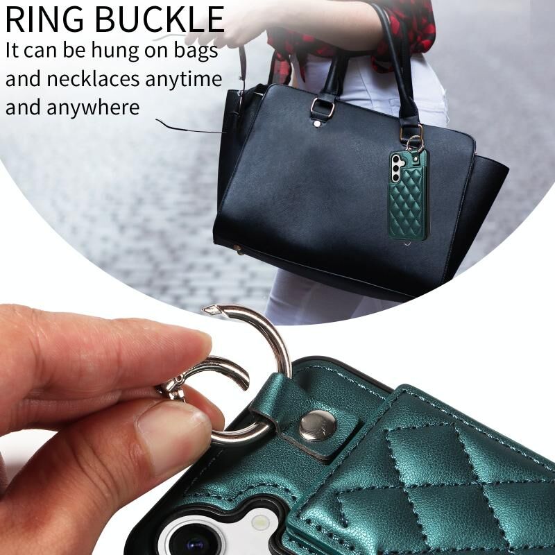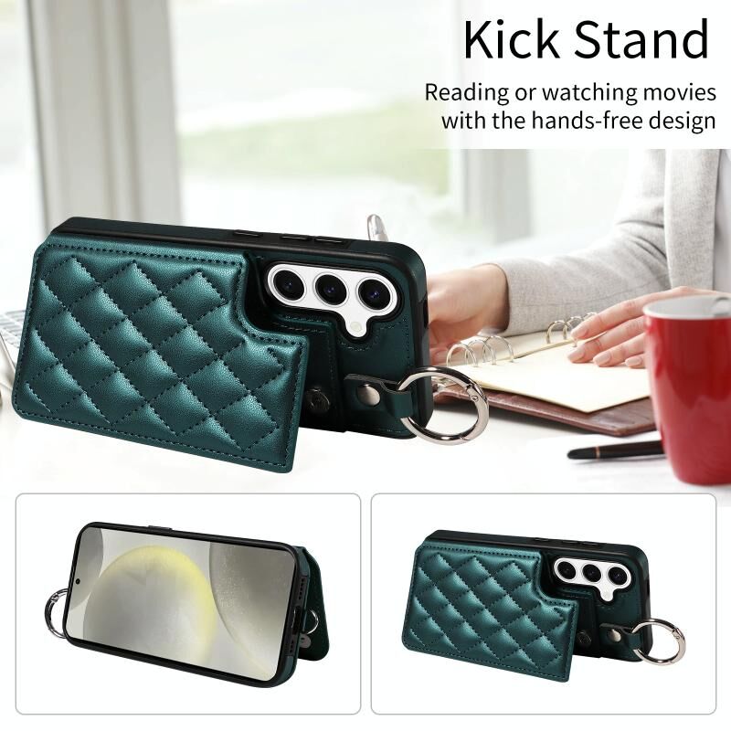 Για Samsung Galaxy S24 5G Rhombic υφή κάρτα τσάντα υπόθεση τηλεφώνου με σύντομο κορδόνι (πράσινο)