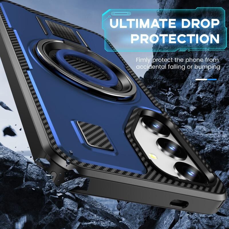 Για Samsung Galaxy S24 + 5G δαχτυλίδι κάτοχος ανθρακονήματα PC υβριδικό TPU τηλέφωνο υπόθεση (μπλε)