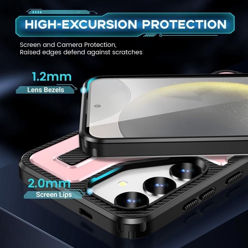 Για Samsung Galaxy S24 + 5G δαχτυλίδι κάτοχος ανθρακονήματα PC υβριδικό TPU τηλέφωνο υπόθεση (Rose Gold)