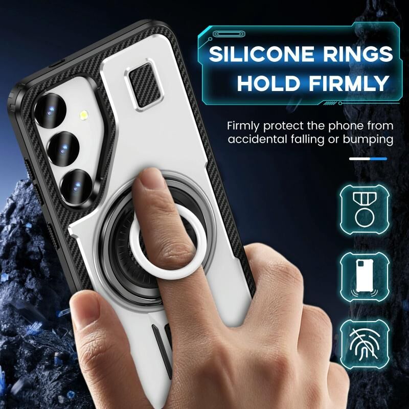 Για Samsung Galaxy S24 5G δαχτυλίδι κάτοχος Carbon Fiber PC υβριδικό TPU τηλέφωνο υπόθεση (λευκό)