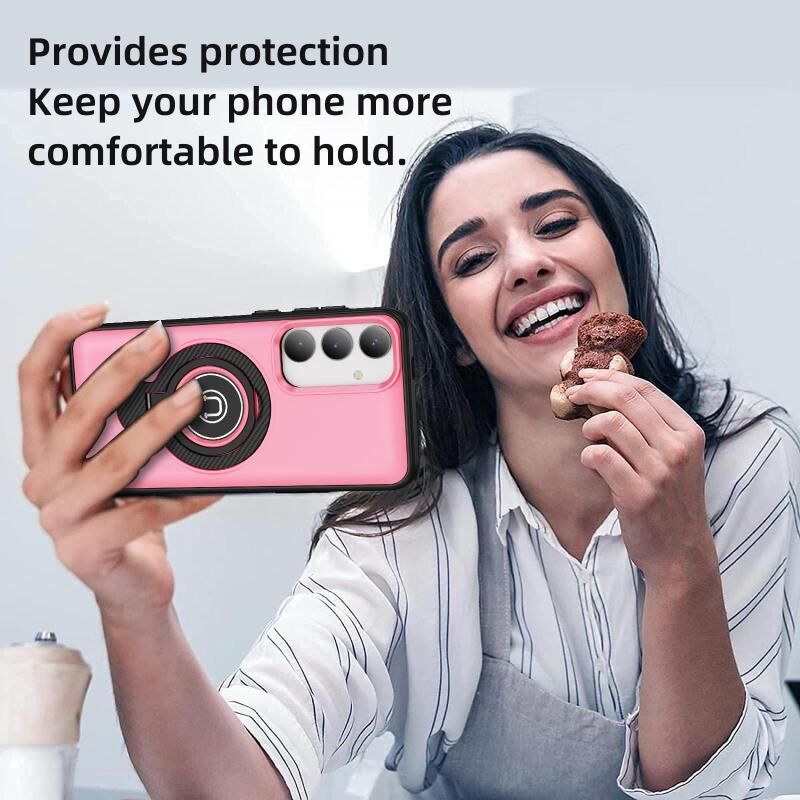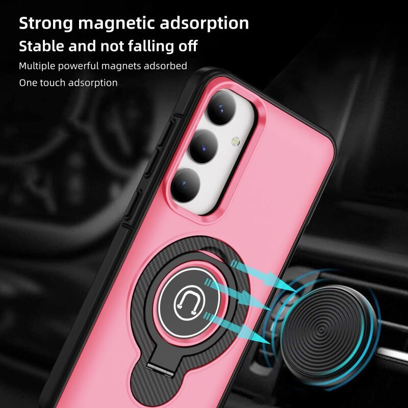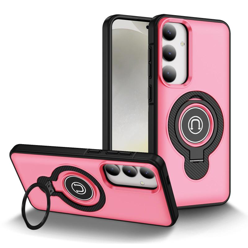 For Samsung Galaxy S24+ 5G Ring Holder Magnetic Phone Case(Bright Pink)