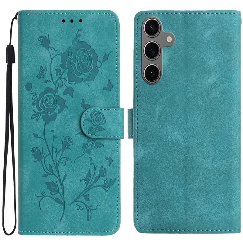 For Samsung Galaxy S24+ 5G Rose Flower Embossing Pattern Leather Phone Case(Green)
