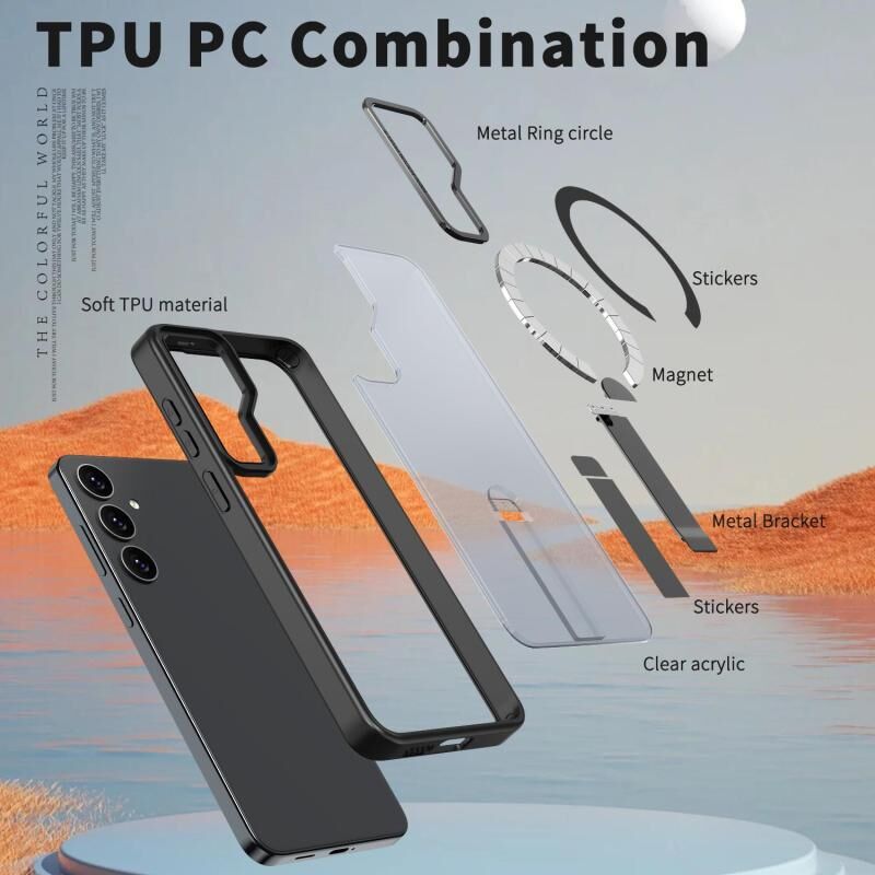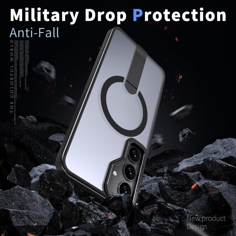 Θήκη τηλεφώνου TPU + PC MagSafe για Samsung Galaxy S24 5G / S25 5G σειρά Star Shine με πτυσσόμενη βάση (Μαύρο)