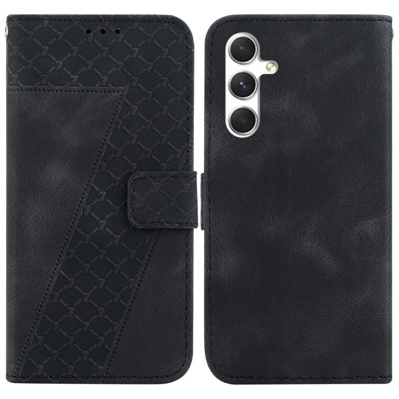 Θήκη τηλεφώνου Samsung Galaxy S24 5G από δέρμα με ανάγλυφο σχέδιο σε σχήμα επτά (Κόκκινο)