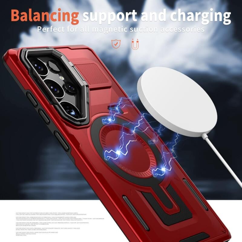 Θήκη κινητού τηλεφώνου Samsung Galaxy S24+ 5G Shield Hollow Frame Holder MagSafe (Κόκκινο)