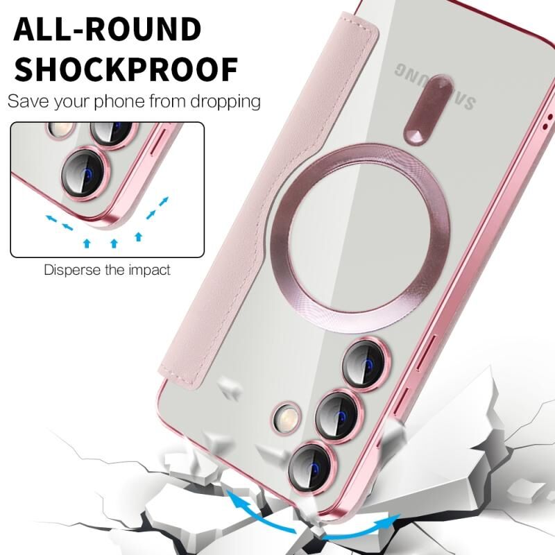 Θήκη τηλεφώνου Samsung Galaxy S24 5G Shield MagSafe RFID Anti-theft από δέρμα με ρόμβους (Σκούρο Μπλε)