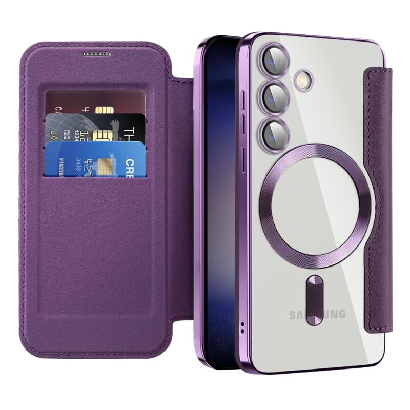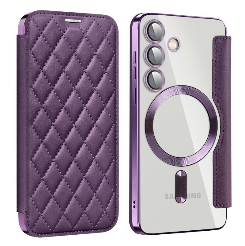 For Samsung Galaxy S24 5G Shield MagSafe RFID Anti-theft Rhombus Leather Phone Case(Purple)