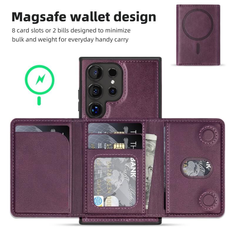Θήκη κινητού τηλεφώνου Samsung Galaxy S24 5G Shield, πολυλειτουργική τσάντα κάρτας MagSafe (Μαύρο)