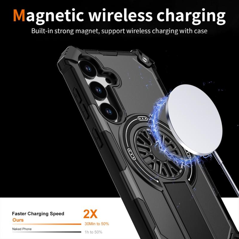 For Samsung Galaxy S24 5G Shockproof Kickstand Metallic Shaft MagSafe Phone Case(Black)