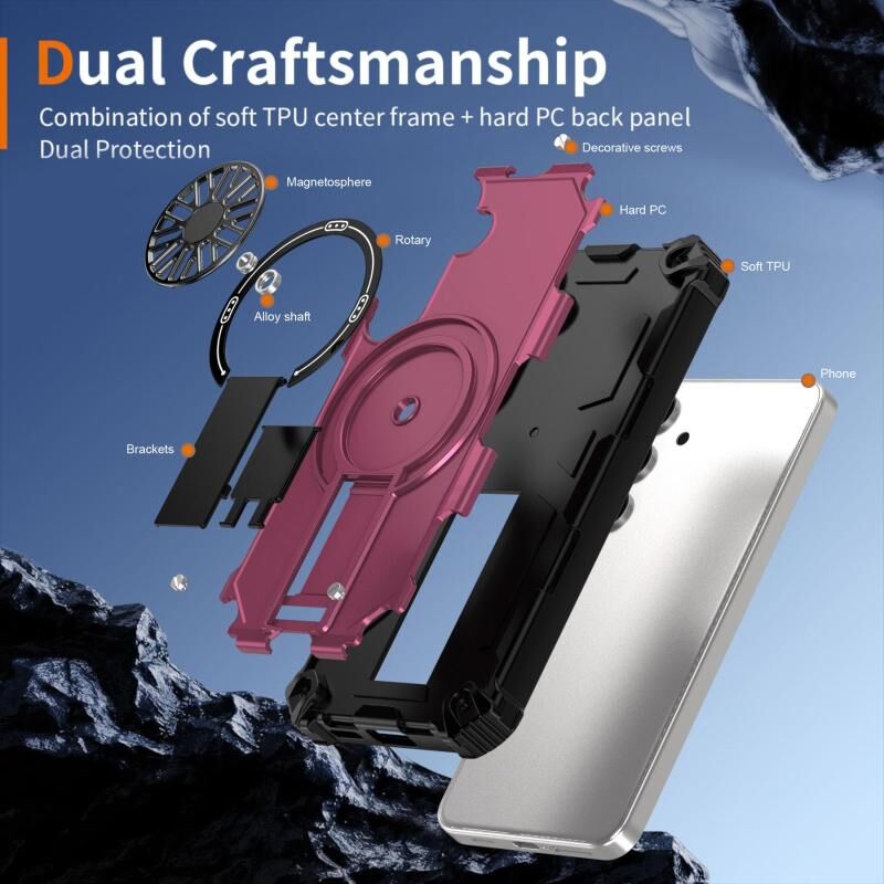 For Samsung Galaxy S24 5G Shockproof Kickstand Metallic Shaft MagSafe Phone Case(Purple)
