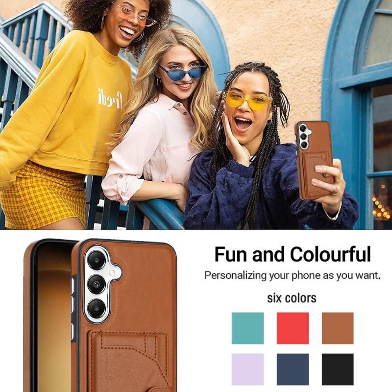 Για Samsung Galaxy S24 5G Ανθεκτική δερμάτινη θήκη τηλεφώνου με θήκη κάρτας (καφέ)