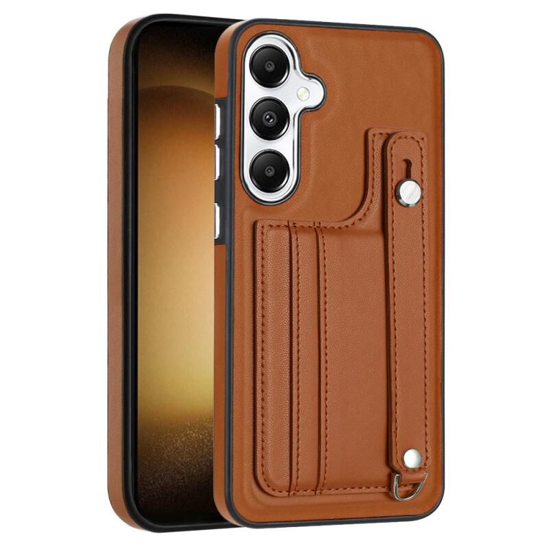 Για Samsung Galaxy S24+ 5G Ανθεκτική θήκη τηλεφώνου με λουράκι καρπού (καφέ)