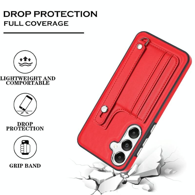Για Samsung Galaxy S24 5G Ανθεκτική δερμάτινη θήκη τηλεφώνου με λουράκι καρπού (κόκκινο)