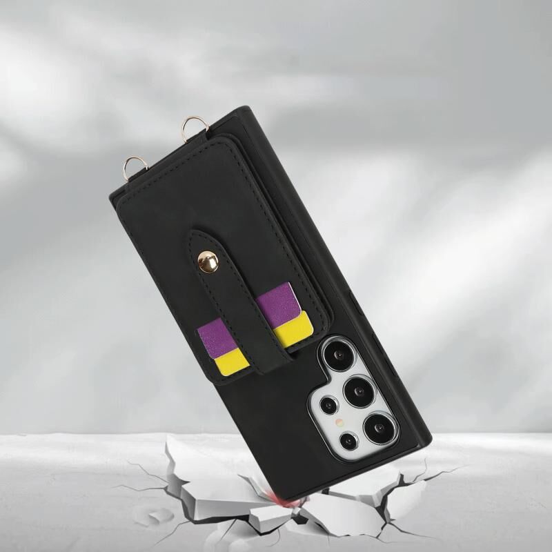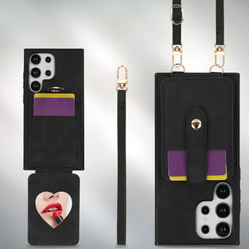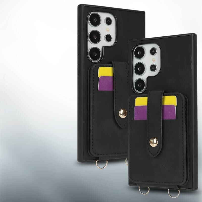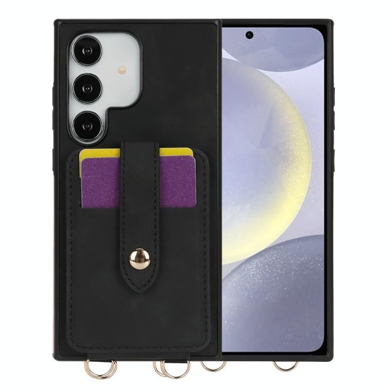 Για Samsung Galaxy S24+ 5G Skin Card Bag τσάντα Crossbody Lanyard τηλέφωνο υπόθεση (Μαύρο)