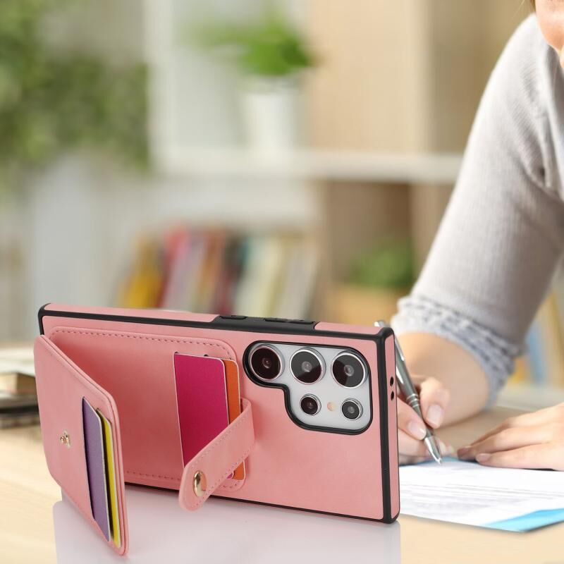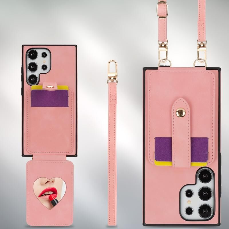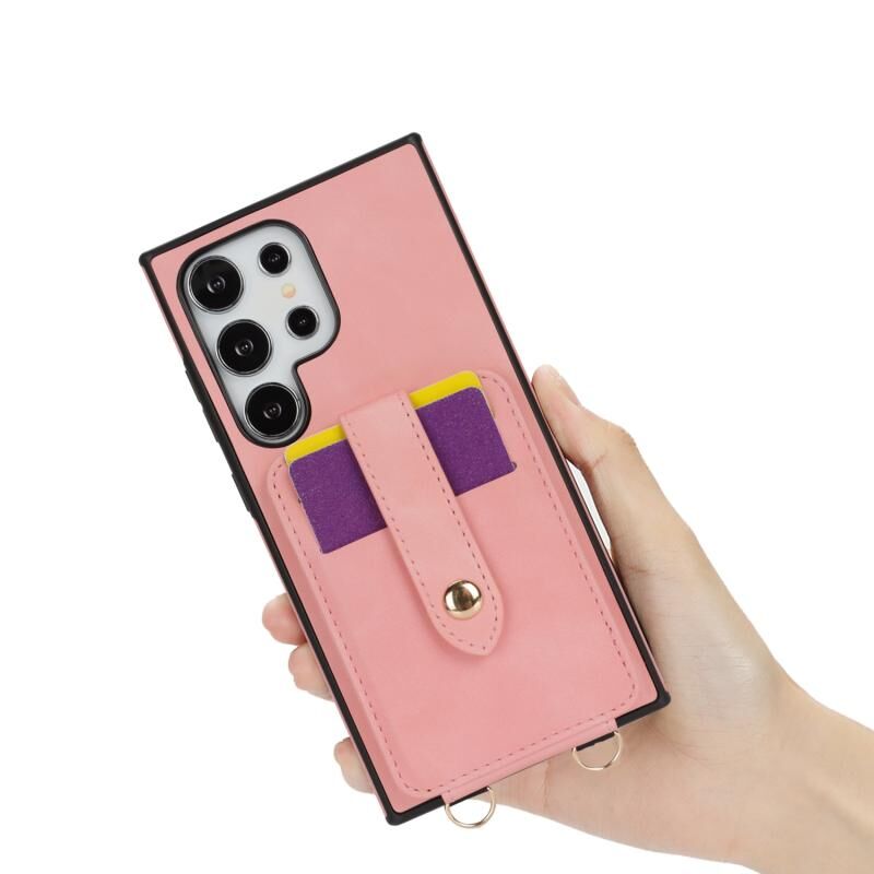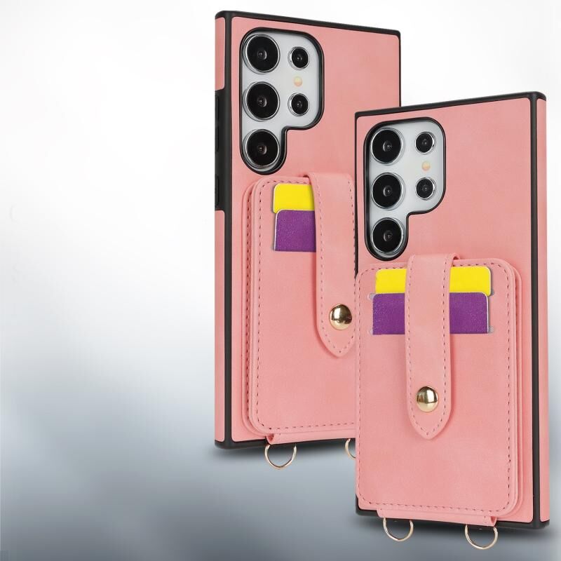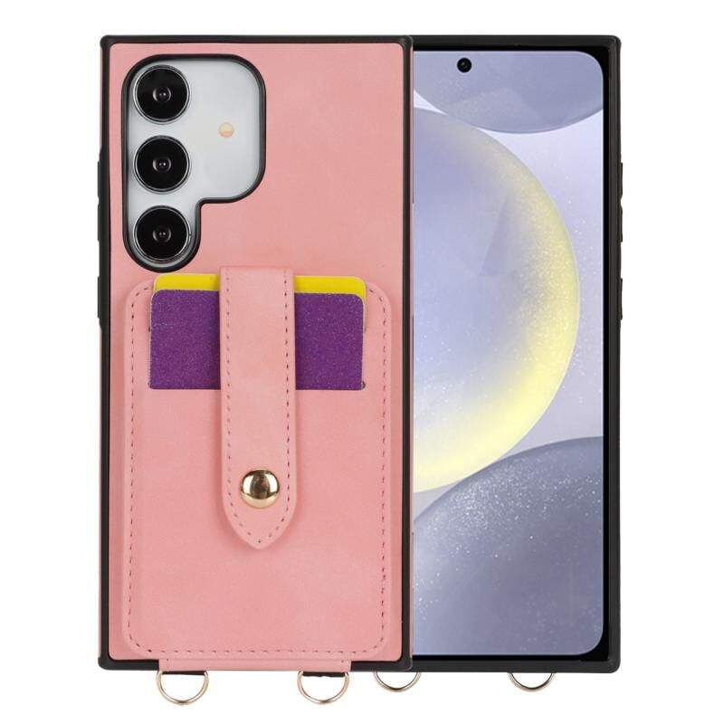 Για Samsung Galaxy S24+ 5G Skin Card Bag τσάντα Crossbody Lanyard τηλέφωνο υπόθεση (ρόζ)