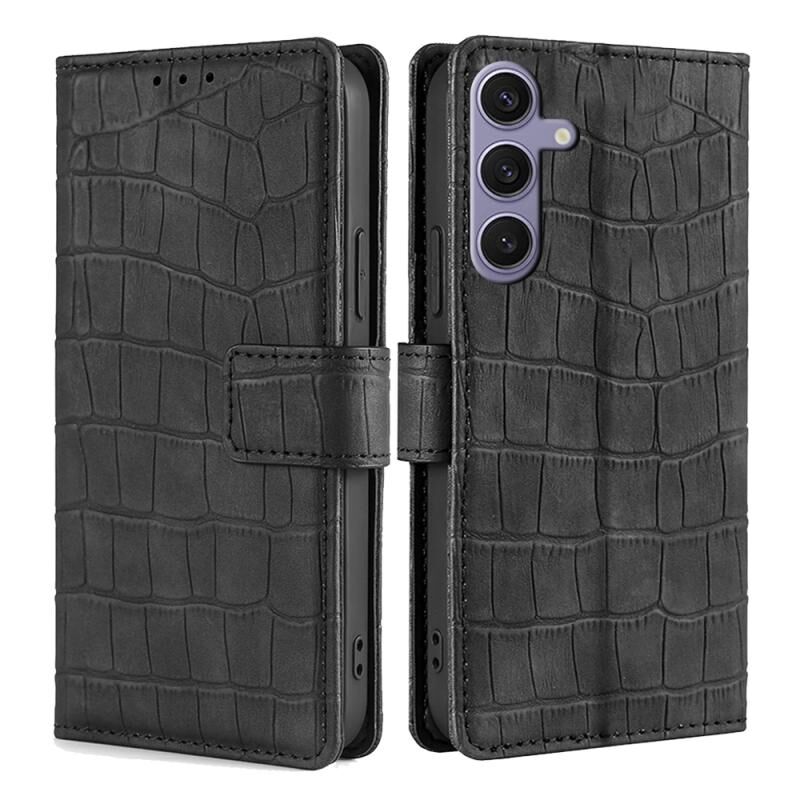 Θήκη τηλεφώνου Samsung Galaxy S24+ 5G από δέρμα με μαγνητικό κούμπωμα και υφή κροκόδειλου (Μαύρο)