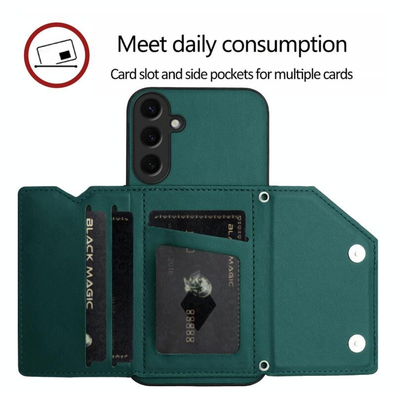 Για το Samsung Galaxy S24 5G δέρμα αίσθηση τέσσερις υποδοχές κάρτας υπόθεση τηλεφώνου με λουράκι καρπού (πράσινο)