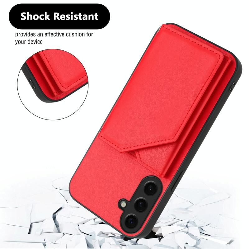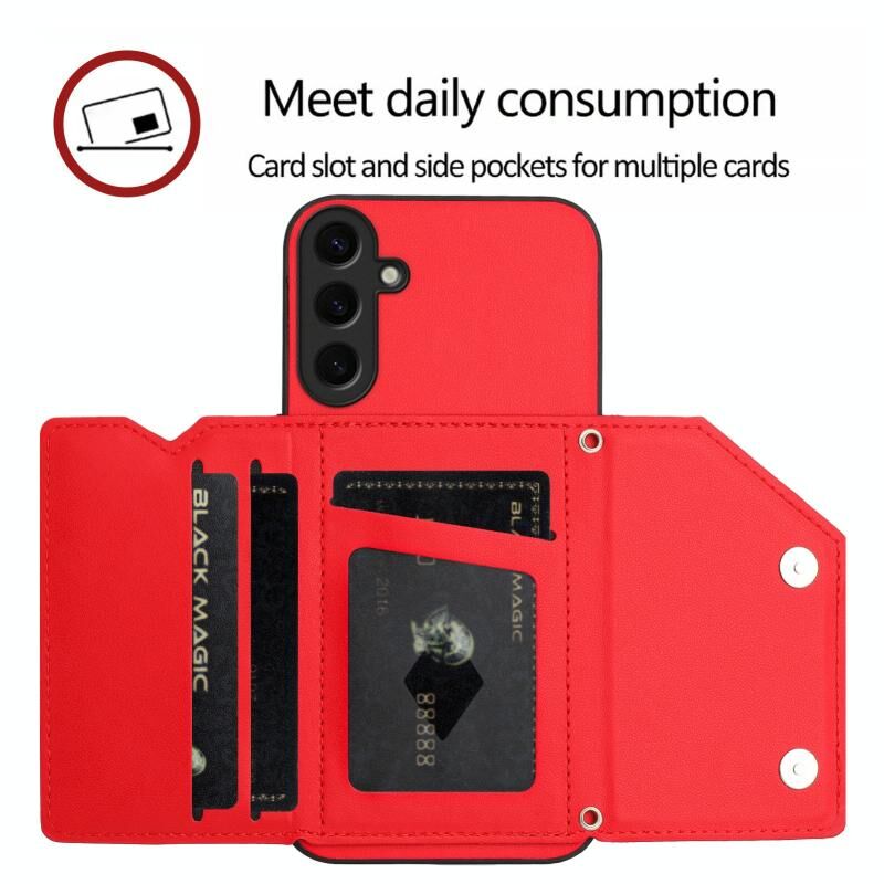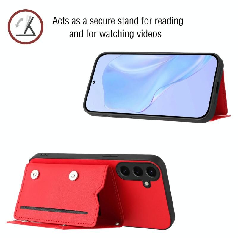 Για Samsung Galaxy S24 + 5G δέρμα αίσθηση τέσσερις υποδοχές καρτών τηλέφωνο υπόθεση με λουράκι καρπού (κόκκινο)