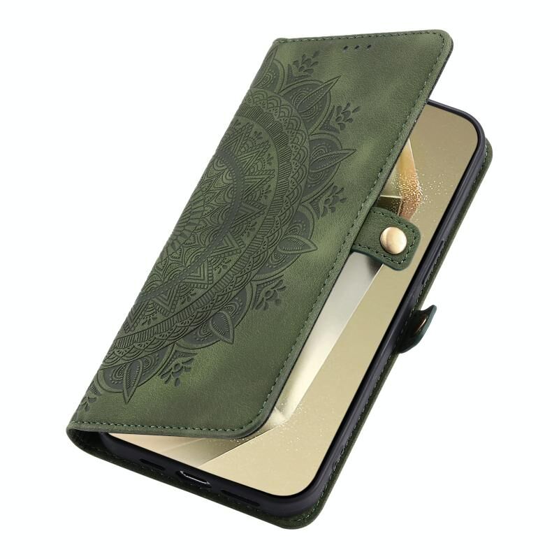 Για το Samsung Galaxy S24+ 5G Skin Feel Totem ανάγλυφη δερμάτινη θήκη τηλεφώνου (βαθύ πράσινο)