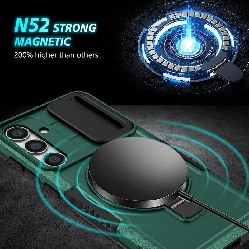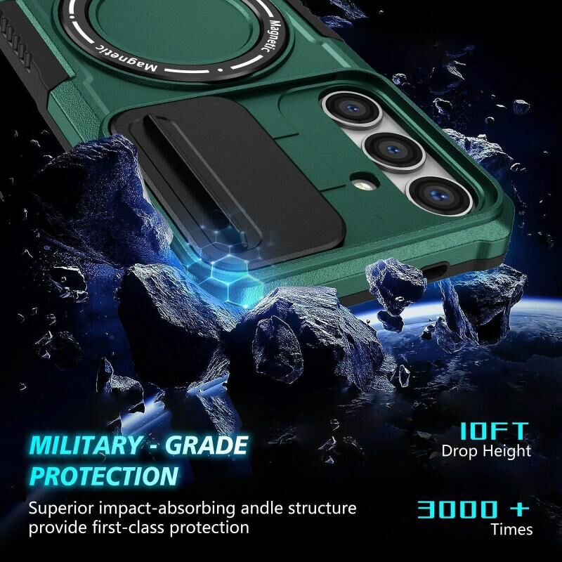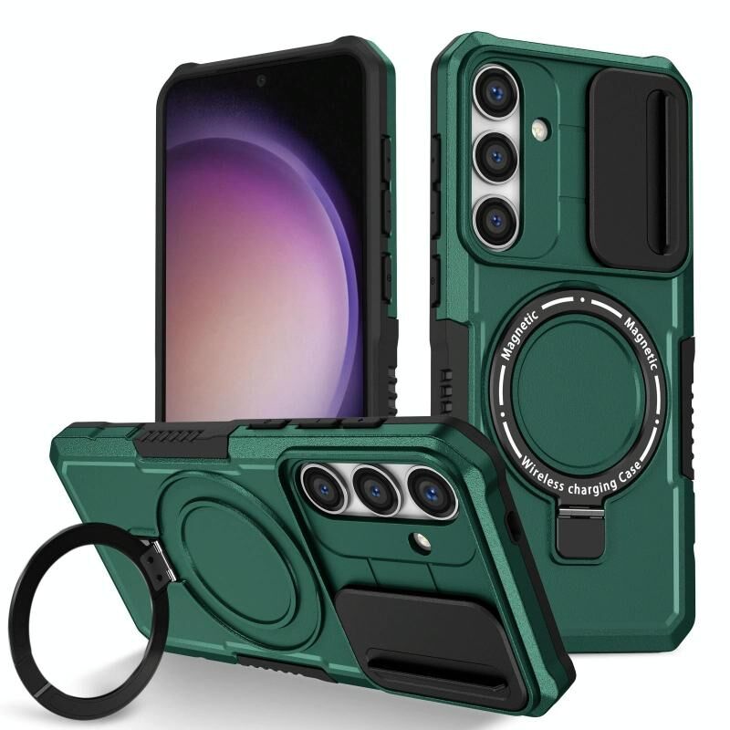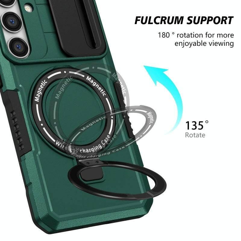 Θήκη τηλεφώνου υβριδική TPU PC με συρόμενο προστατευτικό φακού Camshield και υποστήριξη MagSafe για Samsung Galaxy S24+ 5G (Ροζ Λευκό)