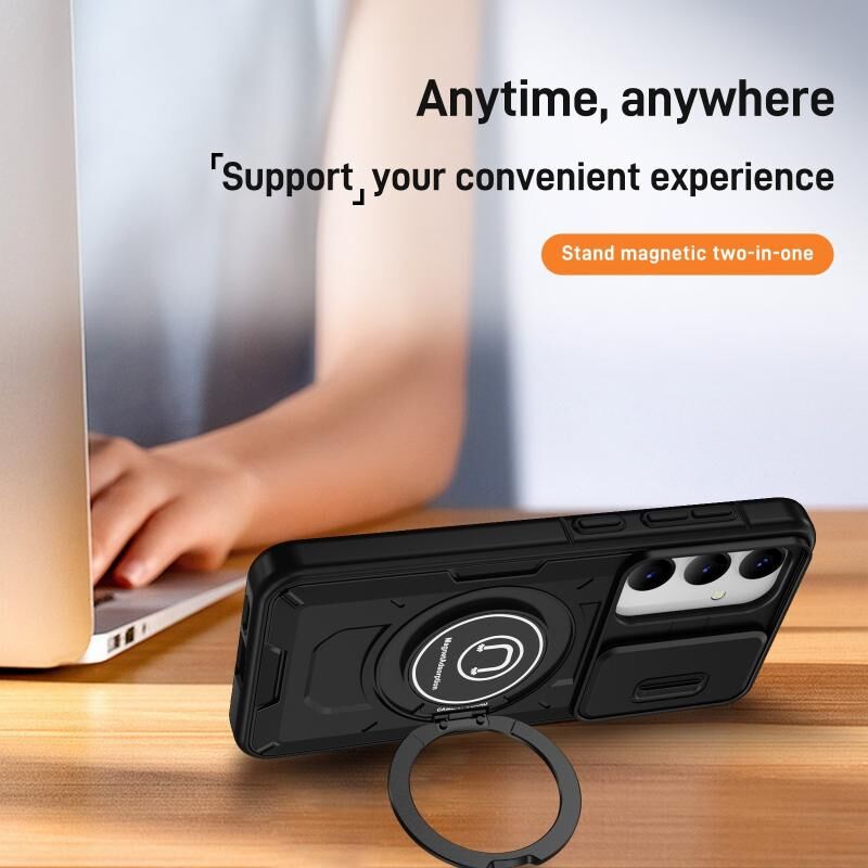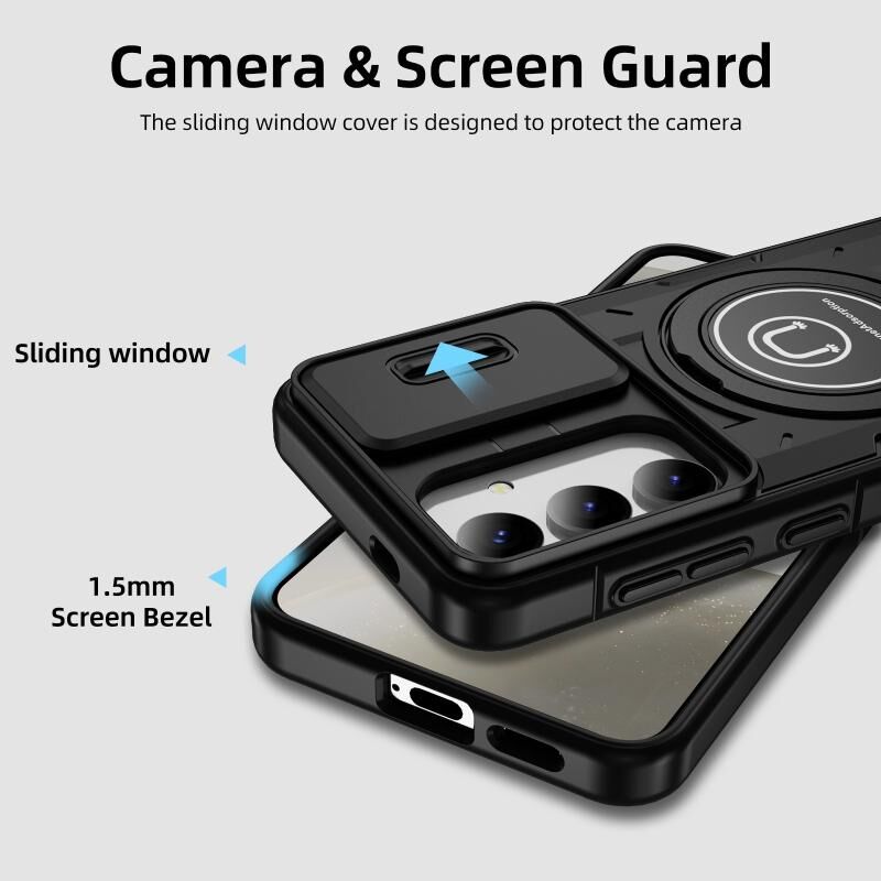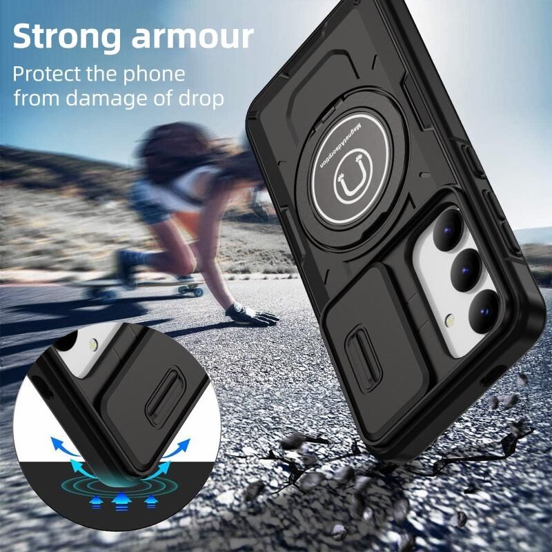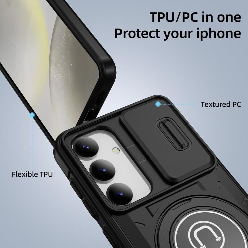 Για Samsung Galaxy S24 5G συρόμενη Camshield TPU υβριδικό PC μαγνητική θήκη τηλέφωνο κάτοχος (μαύρο)