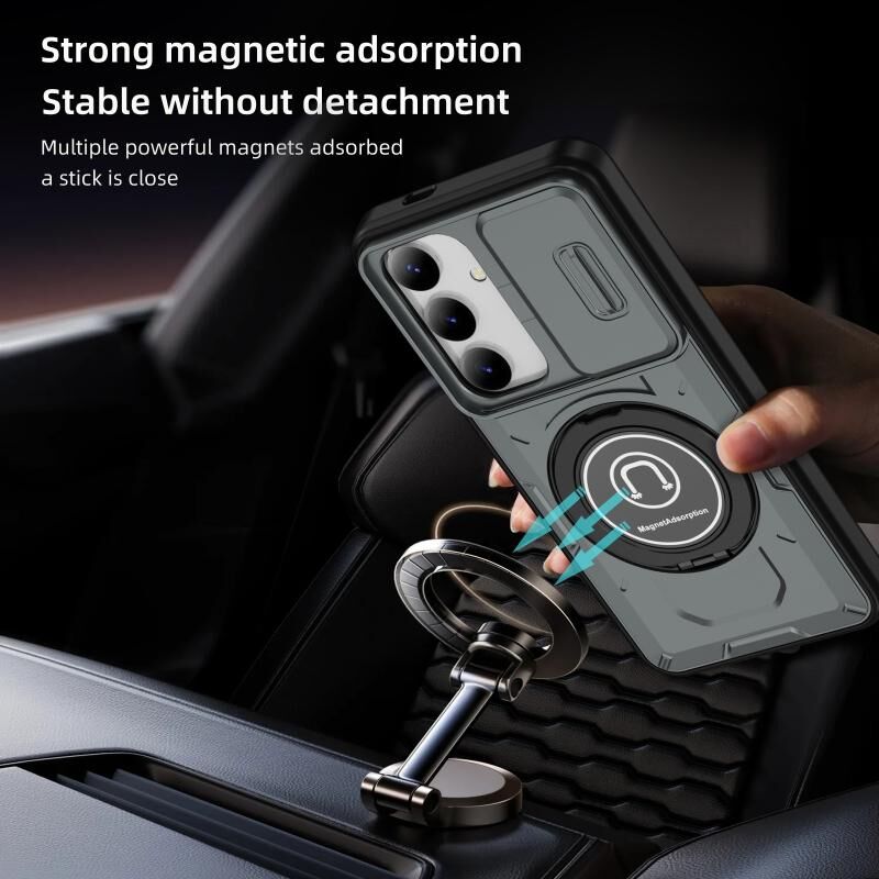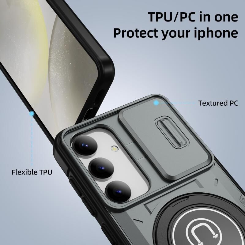 Για Samsung Galaxy S24+ 5G συρόμενη θήκη τηλεφώνου Camshield TPU Hybrid PC Magnetic Holder (Γκρι)