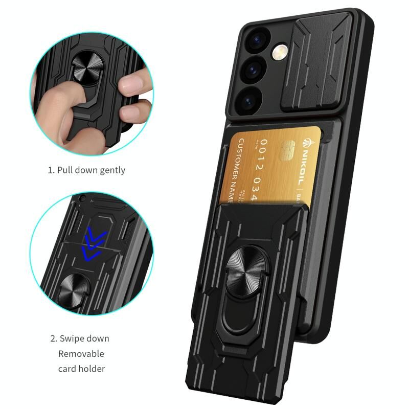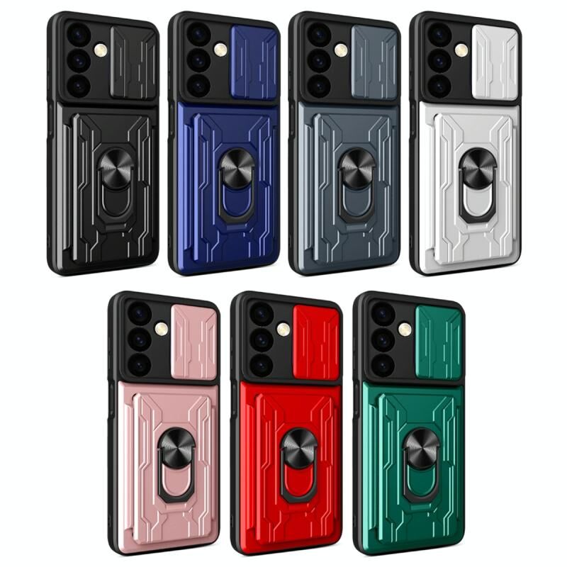 Για Samsung Galaxy S24 5G συρόμενη Camshield TPU + PC υπόθεση τηλεφώνου με υποδοχή κάρτας (σκούρο πράσινο)