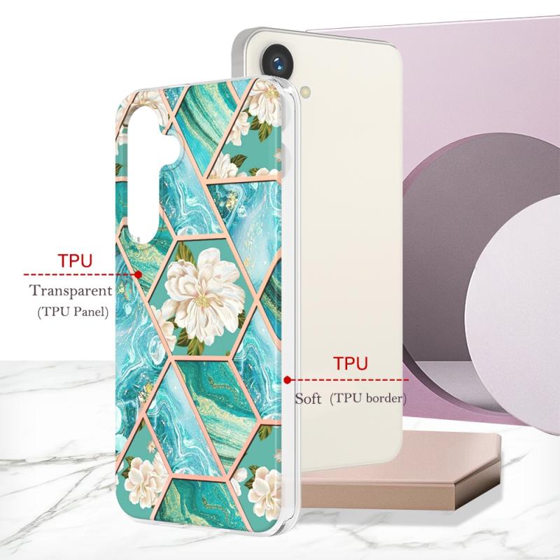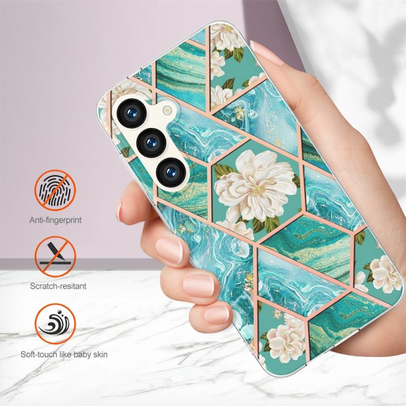 For Samsung Galaxy S24 5G Splicing Marble Flower IMD TPU Phone Case(Blue Flower)