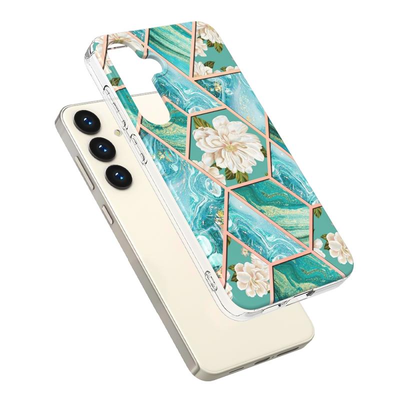For Samsung Galaxy S24+ 5G Splicing Marble Flower IMD TPU Phone Case(Blue Flower)