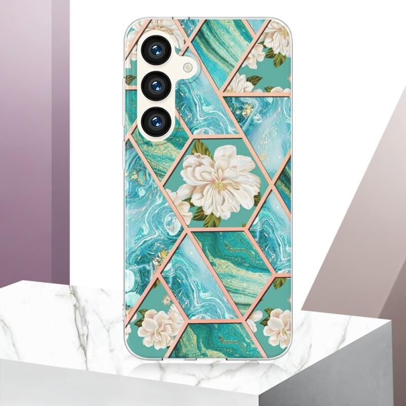 Θήκη κινητού τηλεφώνου Samsung Galaxy S24+ 5G, με σχέδιο μαρμάρου και λουλουδιών, IMD TPU (Μπλε Λουλούδι)