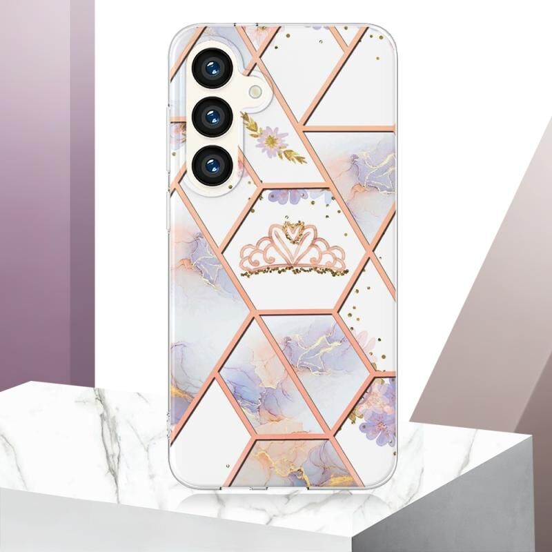 Θήκη κινητού τηλεφώνου Samsung Galaxy S24 5G, με σχέδιο μάρμαρου και λουλουδιών, IMD TPU (Crown)