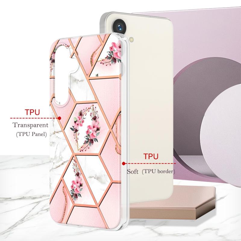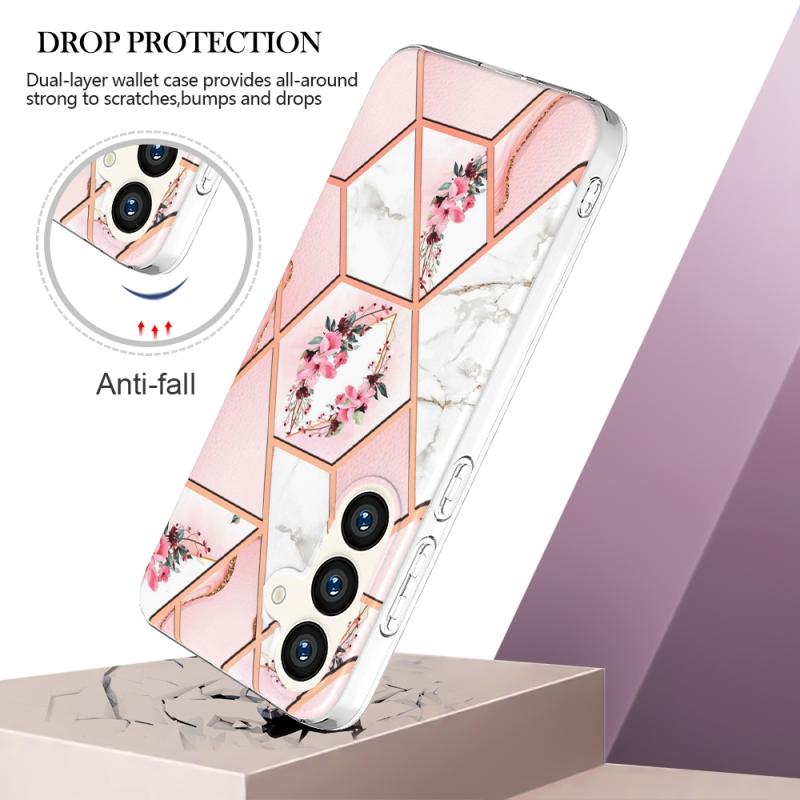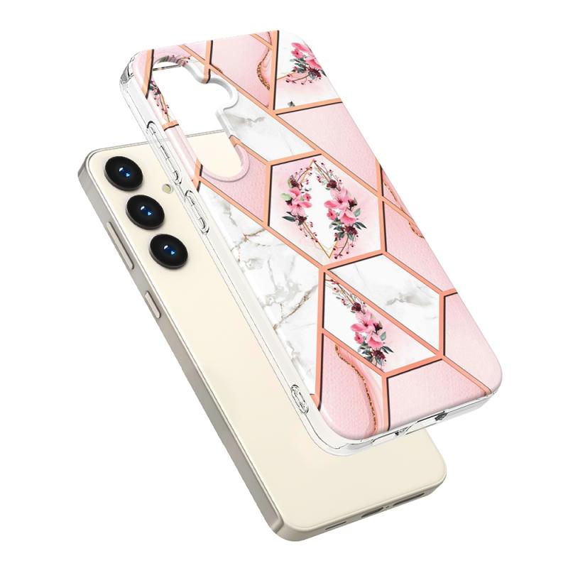 For Samsung Galaxy S24+ 5G Splicing Marble Flower IMD TPU Phone Case(Pink Flower)