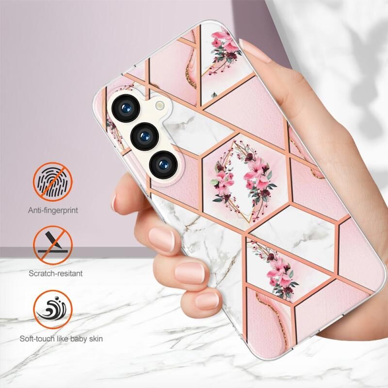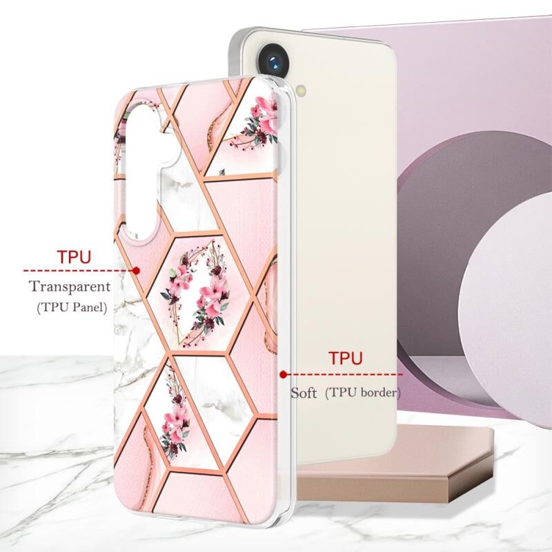 4. Χαριτωμένο και κομψό σχέδιο: Δροσερή και κομψή εμφάνιση με ηλεκτρολυτική επιμετάλλωση IMD με μοτίβο μαρμάρου και λουλουδιών, προστατεύει το τηλέφωνό σας με στυλ.