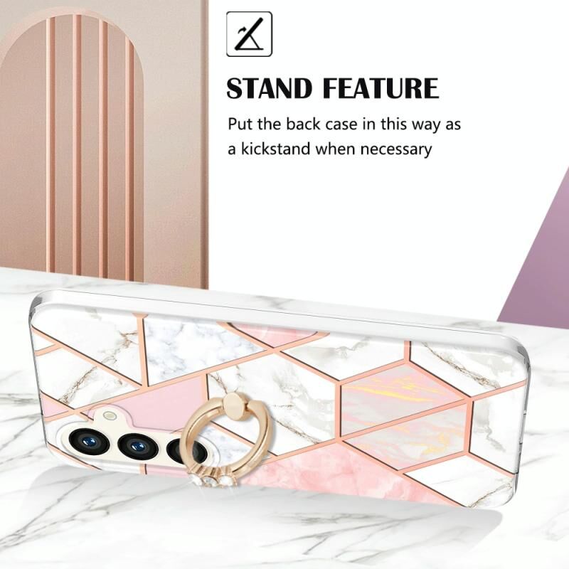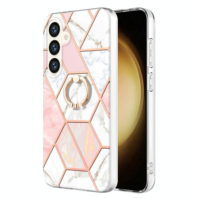 Θήκη κινητού τηλεφώνου Samsung Galaxy S24 5G, με σχέδιο μαρμάρου και λουλουδιών, IMD TPU, με δακτύλιο στήριξης (Μπλε)