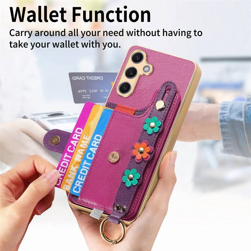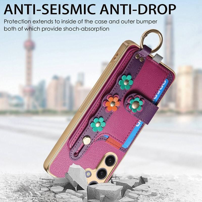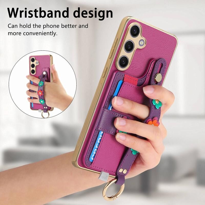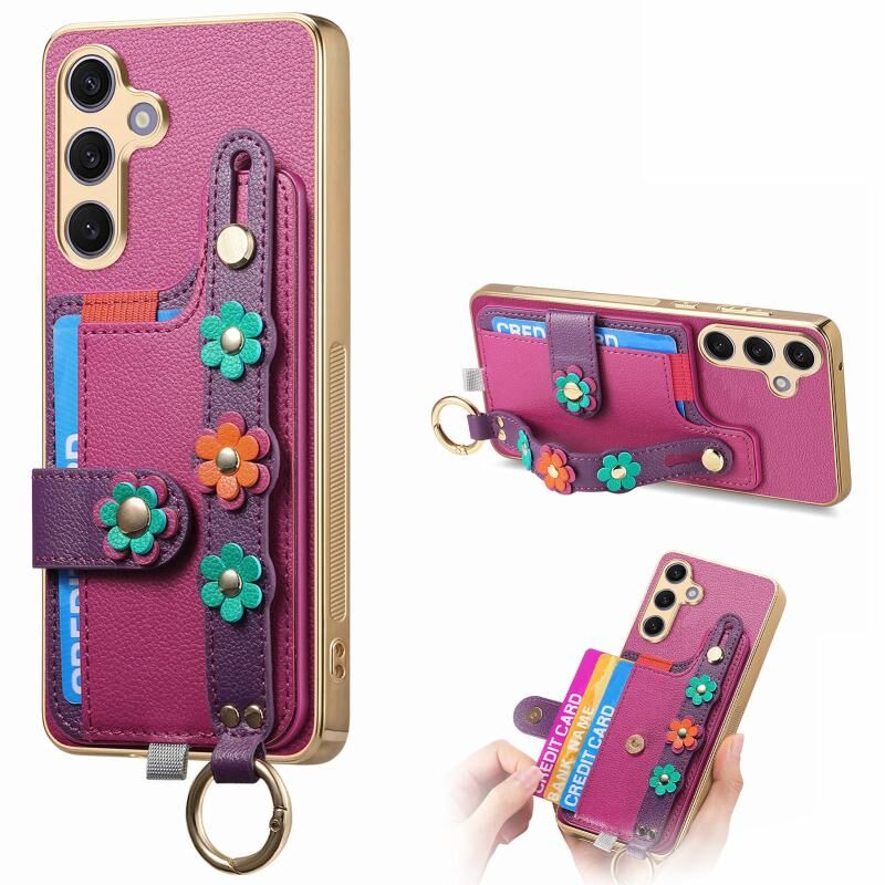 Για Samsung Galaxy S24 + 5G Στερεοσκοπικά λουλούδια Wristband κάρτα τσάντα υπόθεση τηλεφώνου (μωβ)