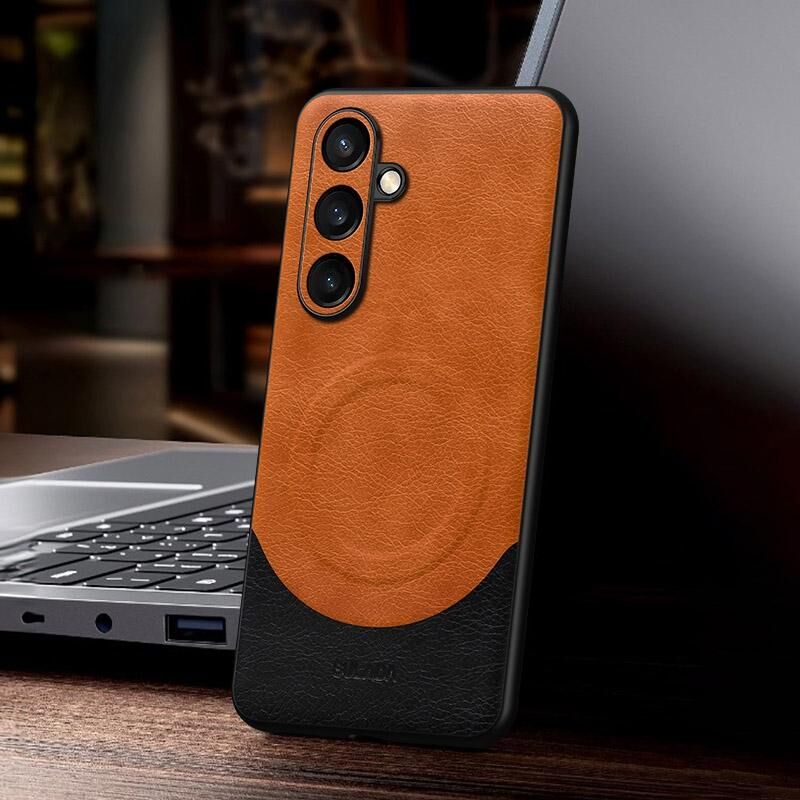 Θήκη κινητού τηλεφώνου Samsung Galaxy S24+ 5G SULADA με δερμάτινη ραφή MagSafe Μαγνητική (Γκρι) (SULADA)