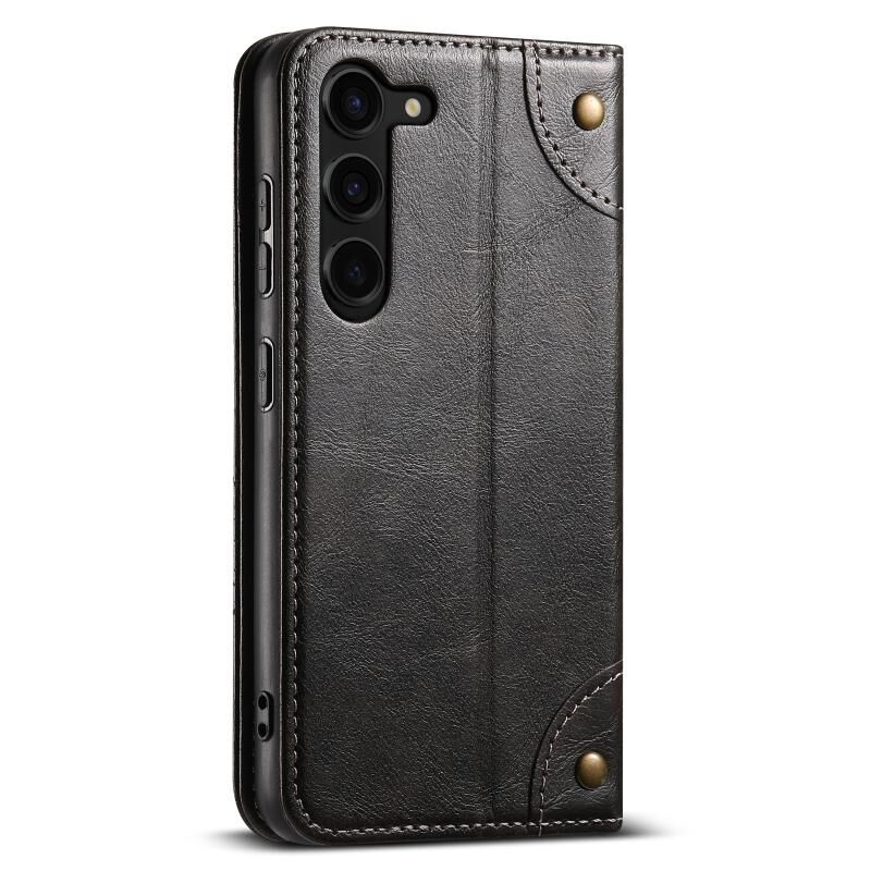 Θήκη τηλεφώνου δερμάτινη με κουμπώματα και υφή μοσχαρίσιου δέρματος Baroque για Samsung Galaxy S24+ 5G (Μαύρο) (Suteni)