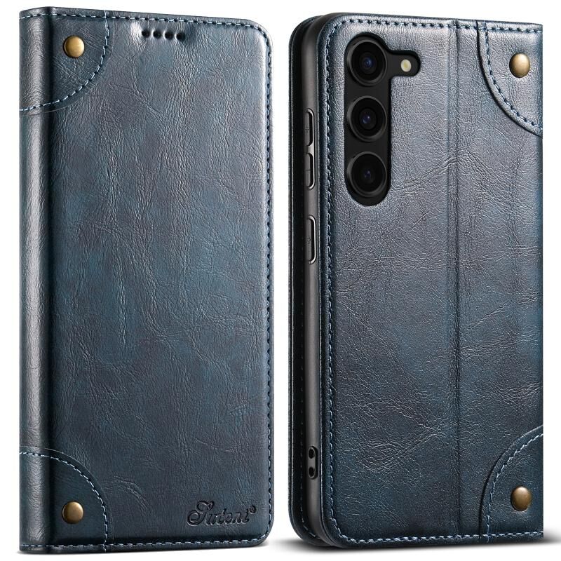 Θήκη τηλεφώνου δερμάτινη με κουμπώματα και υφή μοσχαρίσιου δέρματος Baroque για Samsung Galaxy S24+ 5G (Μαύρο) (Suteni)