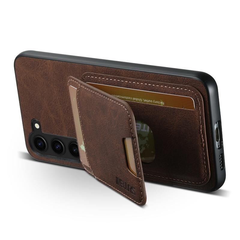 Θήκη κινητού τηλεφώνου Suteni H02 από δέρμα Litchi με κάρτες και βάση για Samsung Galaxy S24+ 5G (Μαύρο) (Suteni)