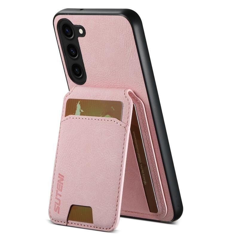 Θήκη κινητού τηλεφώνου Suteni H02 από δέρμα Litchi με κάρτες και βάση για Samsung Galaxy S24+ 5G (Μαύρο) (Suteni)