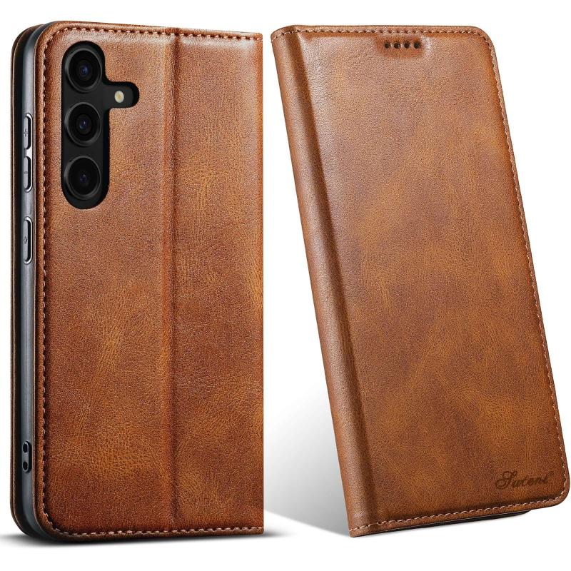 Θήκη τηλεφώνου Samsung Galaxy S24+ 5G Suteni J02 από δέρμα με κερί λαδιού (Καφέ) (Suteni)