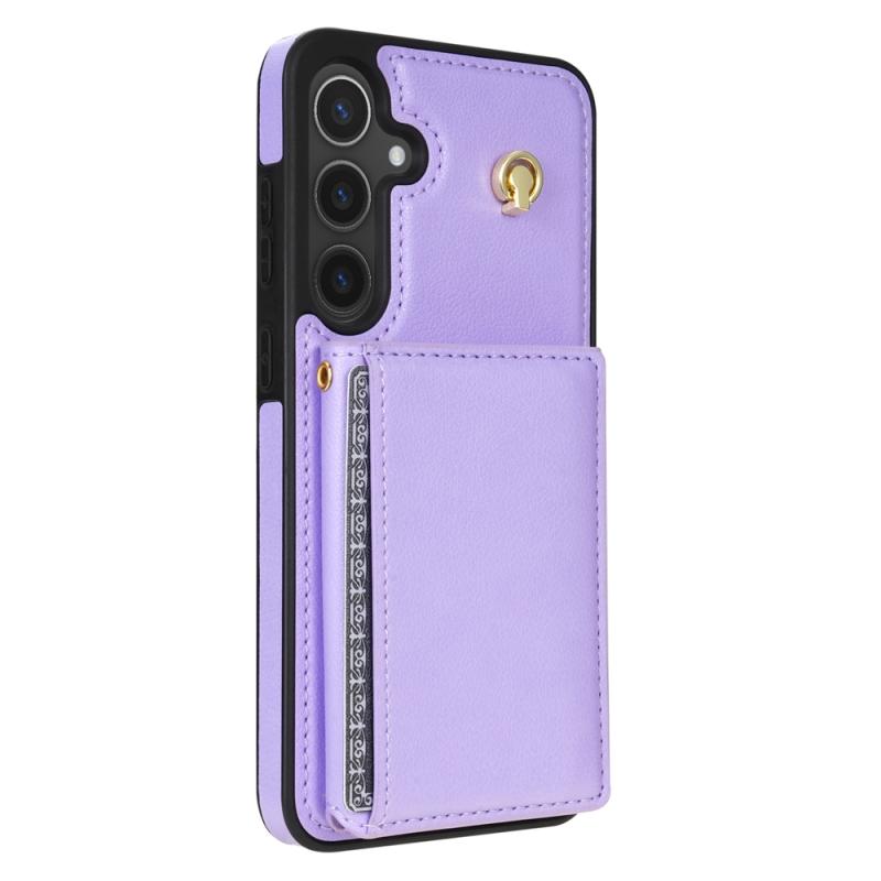 For Samsung Galaxy S24 5G Three Fold Card Bag Phone Case with Long Lanyard(Purple)