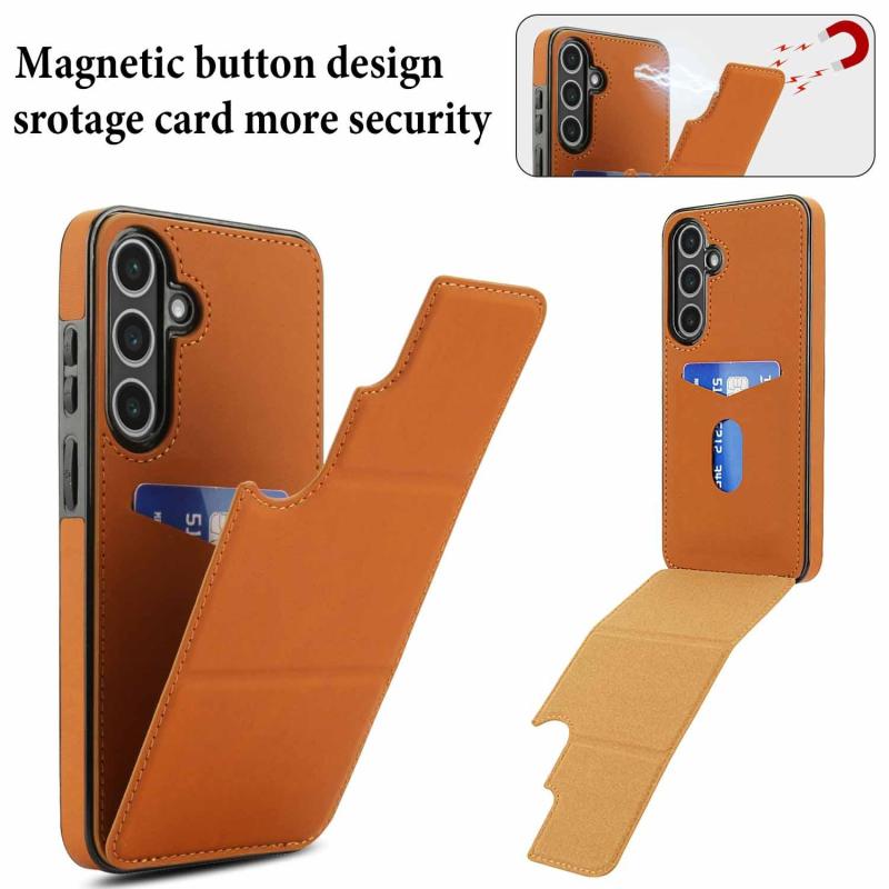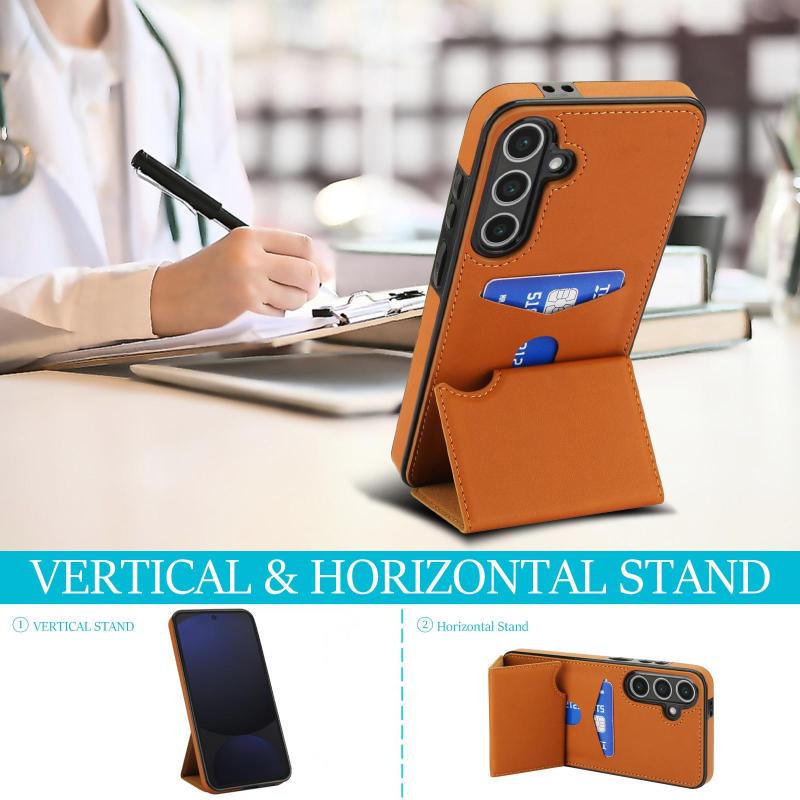 For Samsung Galaxy S24 5G Tri-fold Holder Leather Phone Case with Card Slot(Brown)