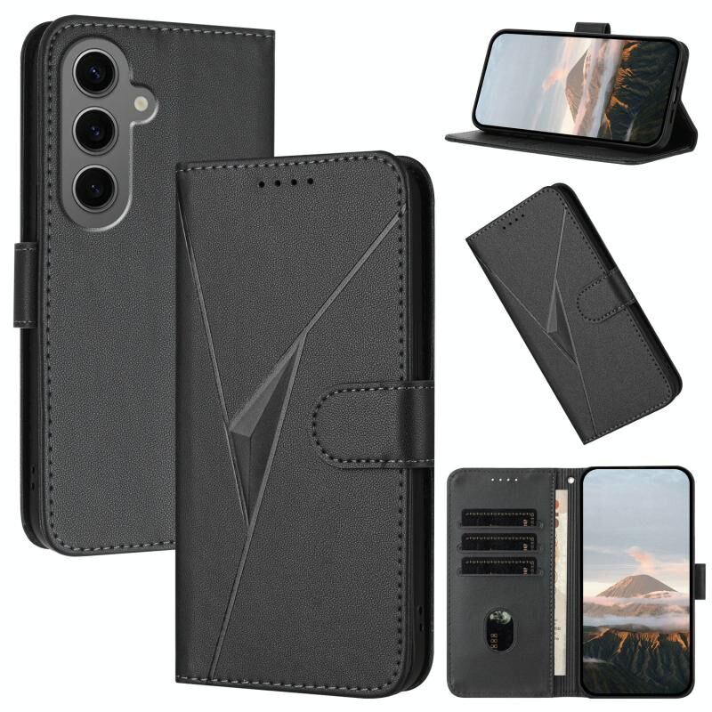 Για Samsung Galaxy S24 + 5G Τρίγωνο μοτίβο αγκράφα κούμπωμα δερμάτινη θήκη τηλεφώνου (μαύρο)